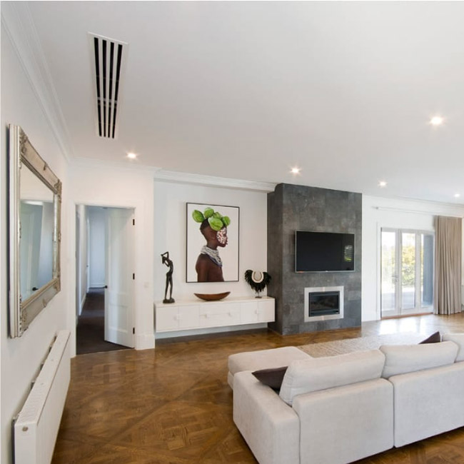 A ducted system is best suited for large areas, for all year-round comfort in our Australian conditions. A ducted system distributes conditioned air throughout the entire home or building, operating in either two or more zones. This enables you the luxury to choose cooling or heating in different rooms in the same house at different times.